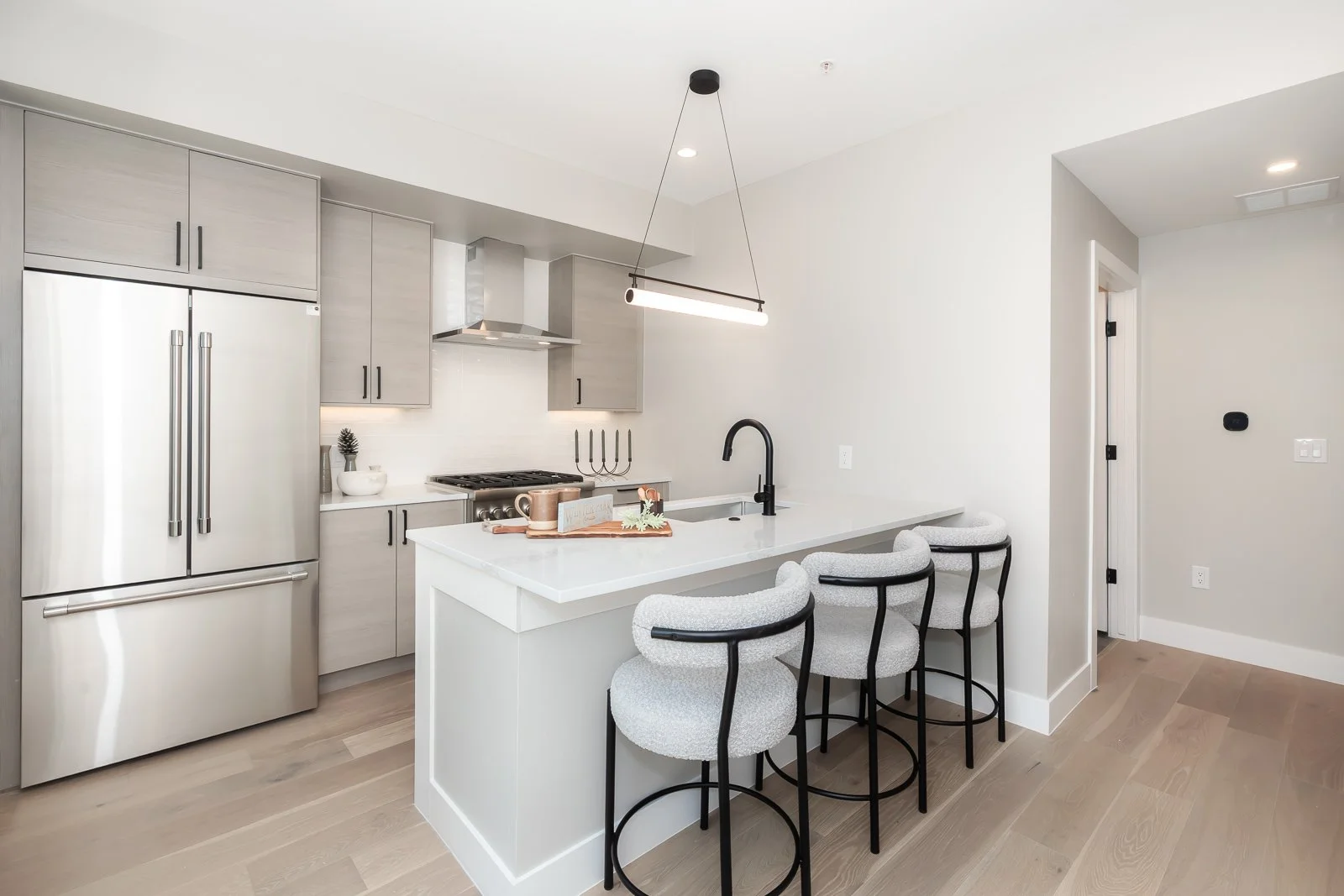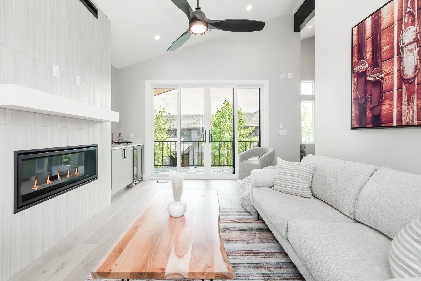 This 3-bedroom, 3-bath residence features the larger of our two available floor plans, thoughtfully laid out to maximize space, light, and livability. Soaring windows bring the outdoors in, flooding the main level with natural light. The open-concept design includes a spacious living area anchored by a cozy gas fireplace, a dedicated dining space, and a modern kitchen outfitted with quartz countertops and designer finishes. Step outside to a large private deck, pre-wired and reinforced for a hot tub—perfect for relaxing under the stars after a day on the slopes.